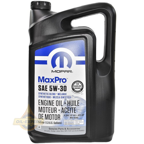 MOPAR MaxPro 5W-30 - Оригинальное синтетическое моторное масло предназначено для использования в бензиновых двигателях автомобилей DODGE, CHRYSLER, JEEP. Также допускается использовать для моторов с катализаторами, где автопроизводителем предписано использование жидкостей с допуском MS-6395