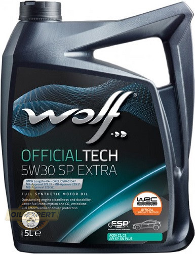 WOLF OFFICIALTECH 5W-30 C3 SP EXTRA - повністю синтетична малозольна моторна олія, створена на основі ретельно відібраних високоякісних базових масел. Воно створено за допомогою останніх технологій для моторних масел із середнім вмістом SAPS, які підходять для використання з каталітичними нейтралізаторами.